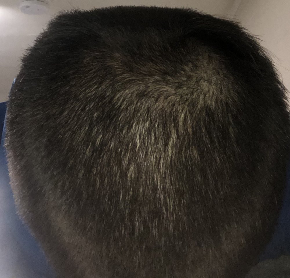 View attachment 138706 View attachment 138707 View attachment 138708 View attachment 138709 View attachment 138710 View attachment 138711 View attachment 138712 Got a buzz cut to see where I was at. Unfortunately there’s some very clear thinning occurring on the crown and the temples. I don’t think anything can make it grow back excluding estrogen, but I have some semblance of hope that oral minoxidil will at least thicken it up a bit once the shed stops.