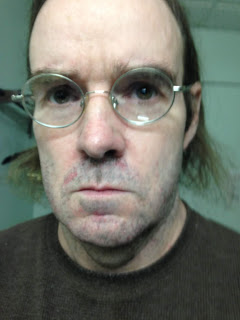 The next four are from 1-16-16 from the flea bag hotel that I was living in after my separation. This is something that I am touchy about when people tell me that I am selfish for expressing my femininity by chemically changing my body. I can't speak for everyone but for me, there was an equal issue of having a hormonal imbalance in terms of how my body processed DHT. Look at the painful blotches on my skin from shaving. I hadn't cut my hair which mostly made me look like a hobo, except there are a lot of better looking hobos lying around. Maybe I should have been drinking