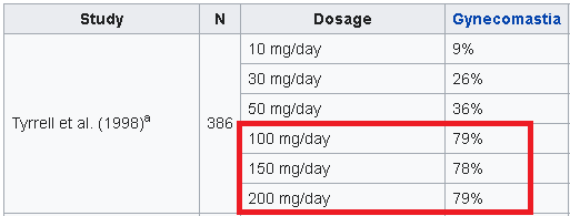 I wonder what for an effect 75mg has... 100mg seems like the ideal dose as a monotherapy.The percentage of gynecomastia does not increase at dosages above 100 mg. Apparently, there is no point in exceeding this dose. Perhaps I do not have gynecomastia, because 50mg cannot block all androgens, and they continue to displace E in the breast tissue. Let's see what will happen next. I will increase the dosage to 75mg in the fall if I still don't see a change.