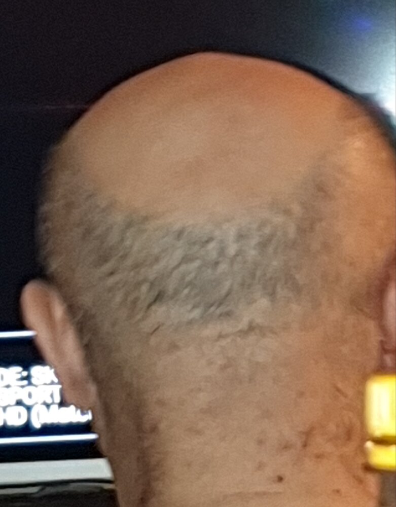 Like literally no hair, only small miniaturized patches on the occipital, that's it.