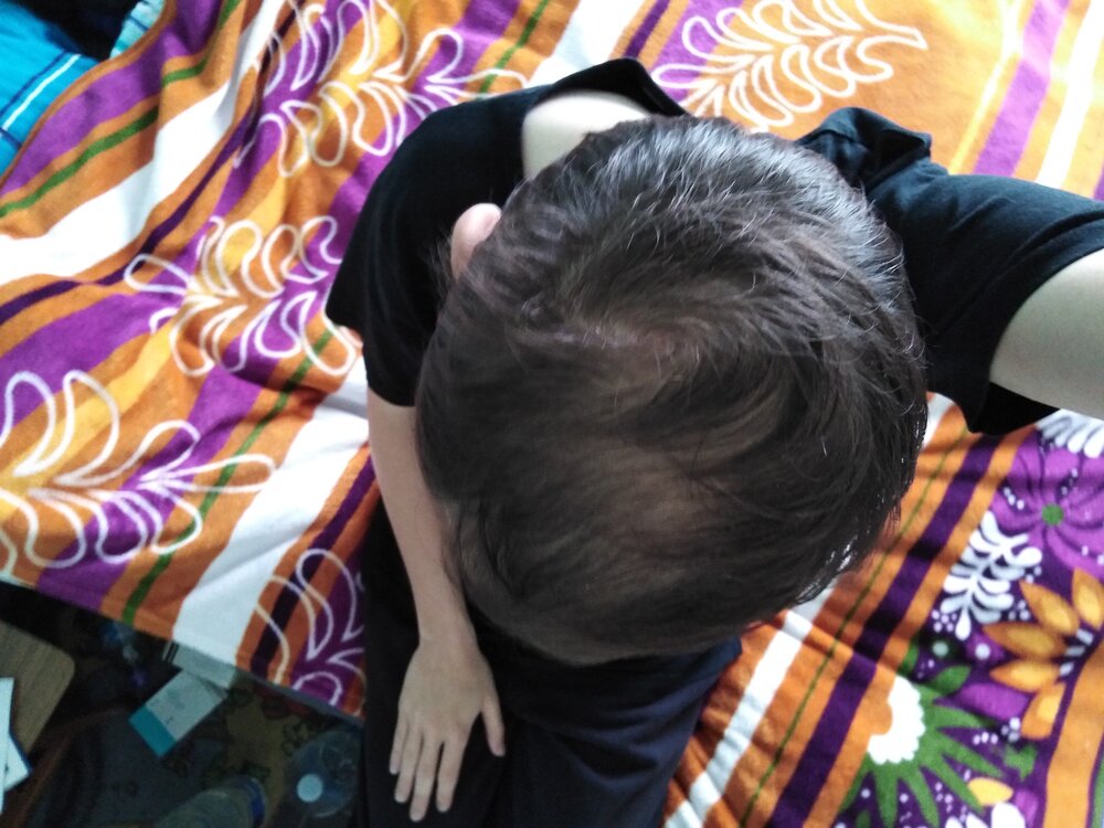 Today is just short of three weeks on HRT (Day 20), and I took the first pictures of my crown, it looks so much better! I also took one picture of my temple, that seems to have started growing real hair.