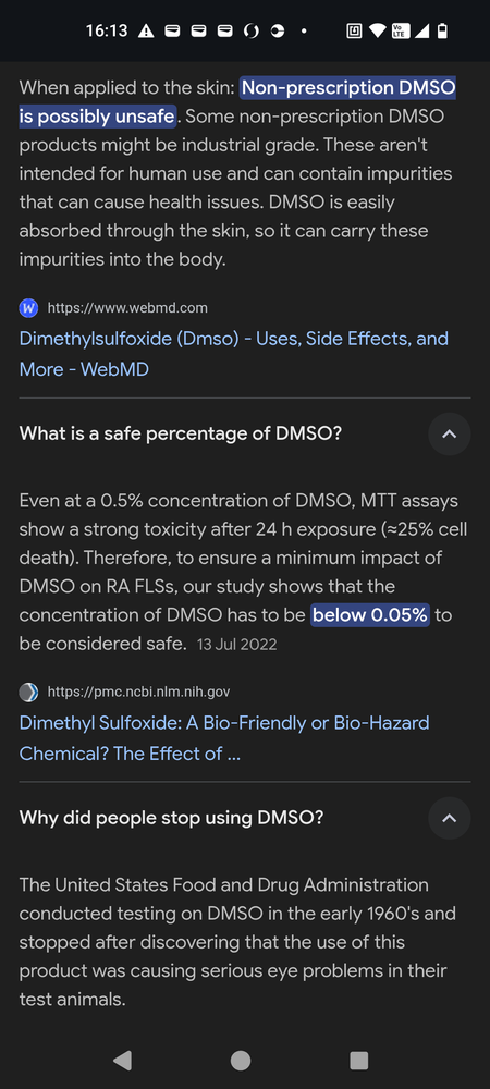 Well... Im abit freaked out by dmso now. Cant I use 95% ethanol with the magnesium oil and rosemary instead? Will it help abit? Or maybe I try some dmso not sure atm. Just paranoid.