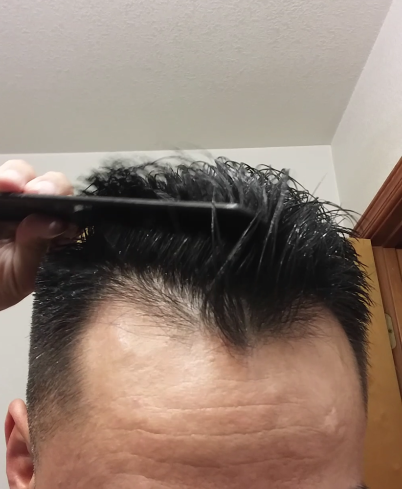 Be consistent with the photos. You're outside in one, then in the other you're in artificial lighting with your hair damp or styled, I can't tell. Post a crown picture.
