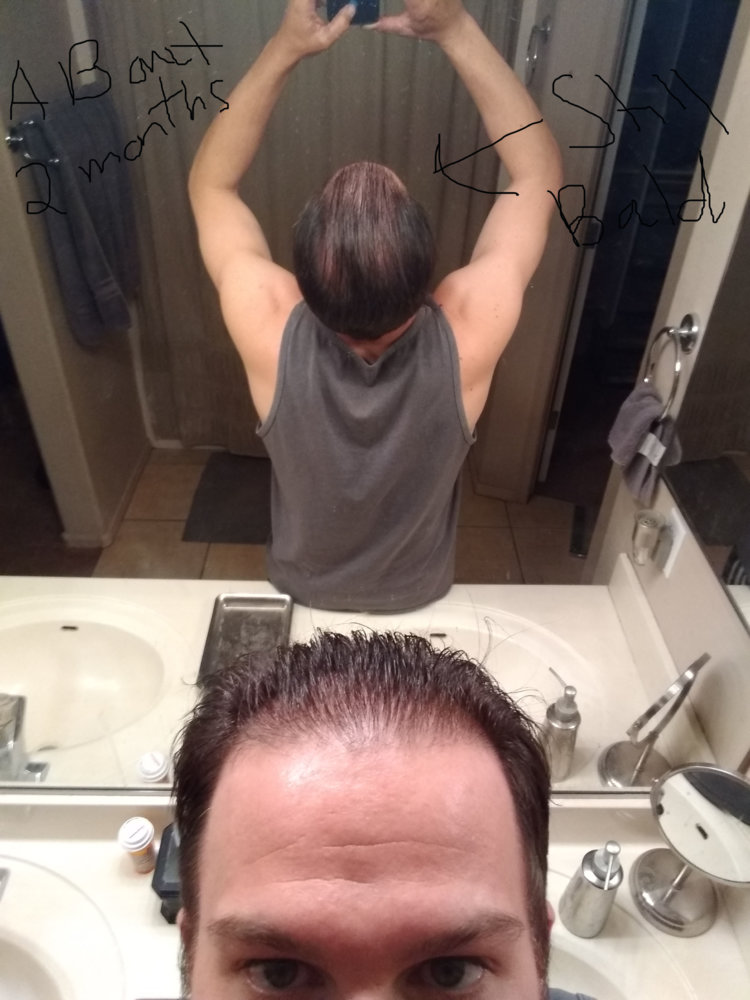 Yeah my hairline is quite a bit higher than it was, even 6-7 years ago. In some pictures, or certain angles in reflective surfaces it looks really high....Some sticker shock of styling my hair back might also be part of it, which I haven't done in years. I'm thinking, if I do get a transplant, it'll be a hairline 1/8 inch transplant. But I'll wait until I'm a year in, and get used the look, and make a decision.