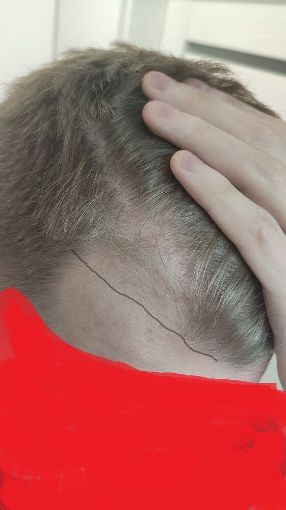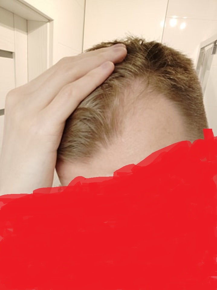 Na razie używaj tylko doustnego finasterydu 1 mg / dzień lub dodaj miejscowo finasteryd w nadziei na odrost? Dodaję 2 zdjęcia.