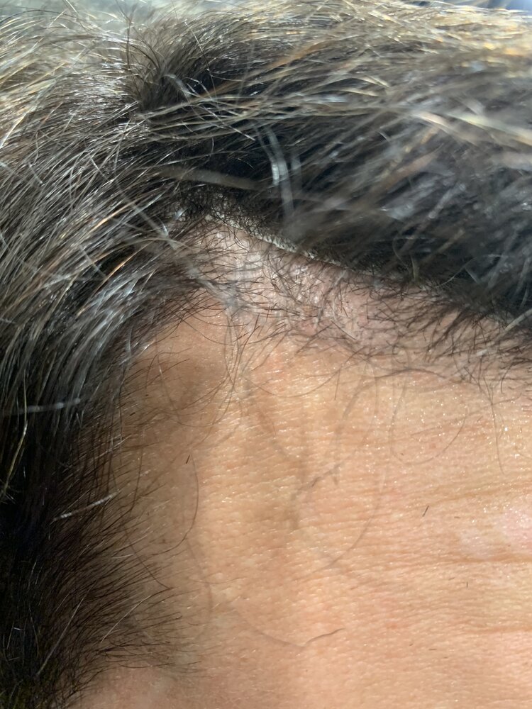 2) more problematic, the membrane is clearly visible in one area. Not only is it visible, but it is SOLID WHITE. I've spent lots of time watching videos, looking at pictures and reading feedback and I've never seen this before. The hairdresser said the base is a Polyurethane PU membrane which I've never seen any look like this. This just feels... very cheap. It also seems to be already lifting a bit??