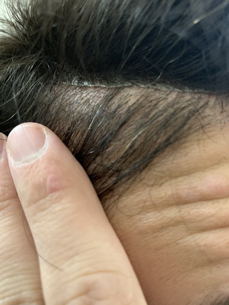 Given I had a hair transplant a few years ago, I still have an ok-ish amount of hair remaining in the front, so the hairdresser suggested to place the system behind a few 1-2cm of bio hair, which would allow cause less issues with an exposed hairline, which felt like a great idea.