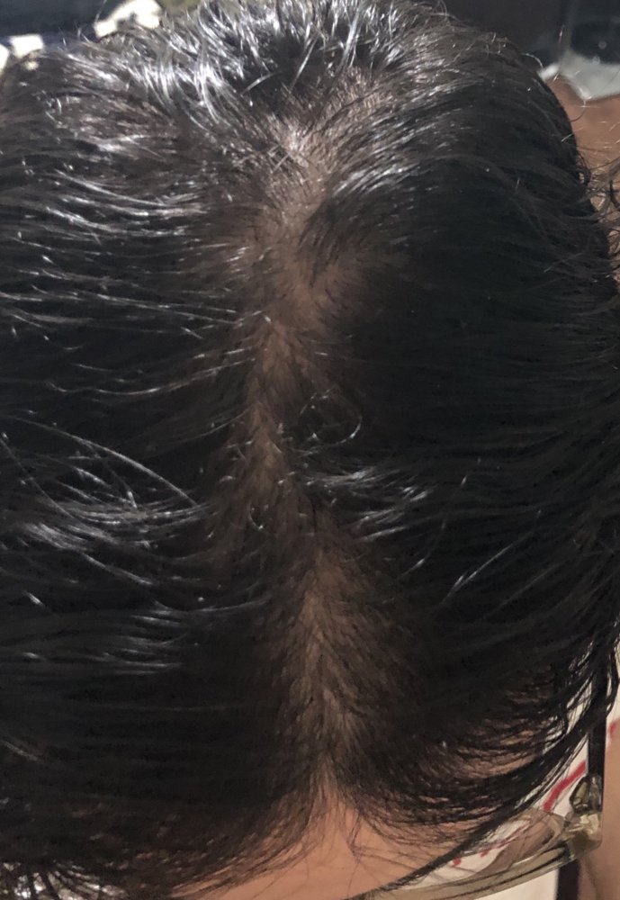 I’ve been growing my hair out for about 9 months now, it’s the first time I’ve tried it and the middle part is very annoying. I thought it was normal at first but it looks too wide a gap to be. I go to the gym regularly, drink a lot of water and eat right. How can I fix this? (Haven’t shampooed or conditioned my hair about 4 days since taking this pic)