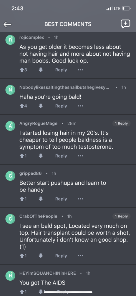 So this was really the first time normies have mentioned and kinda made fun of my hair loss ever, so it hit me pretty hard. I know I set myself up posting it on imgur but I didn’t realize people outside of tressless were going to see it.