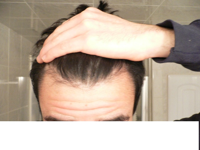Here are some pictures for you to compare. There is one of my hair "styled," another with my hair pulled back, my crown, and another with my hair spiked up after a minoxidil application. Look back at my old pictures to see how its been getting thinner and receding more.