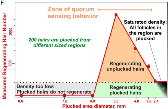 In the quorum sensing study if the density of plucked hairs was too high then regrowth was diminished. I suspect that is because you want hairs in the region to signal for the recruitment of stem cells. In the case of microneedling we are not removing hairs so maximum density should not be an issue. Look at the burn victims who got amazing regrowth. It seems that the more thorough the density of wounding the better the results.