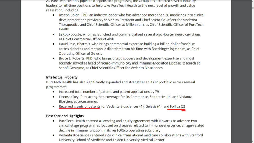 And on this document of puretech health (April 2017) we can read that they have received 2 grants of patent. We have found only one of them. The other document is published on january 2017.