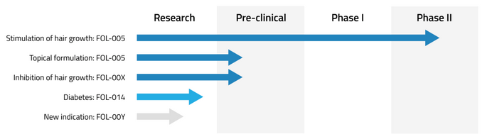 FOL-005 is the only thing in phase 2 now. Other things are pre-clinical. "Several" project ? Did you really look at their pipeline ? LOL, only diabetes and hair.