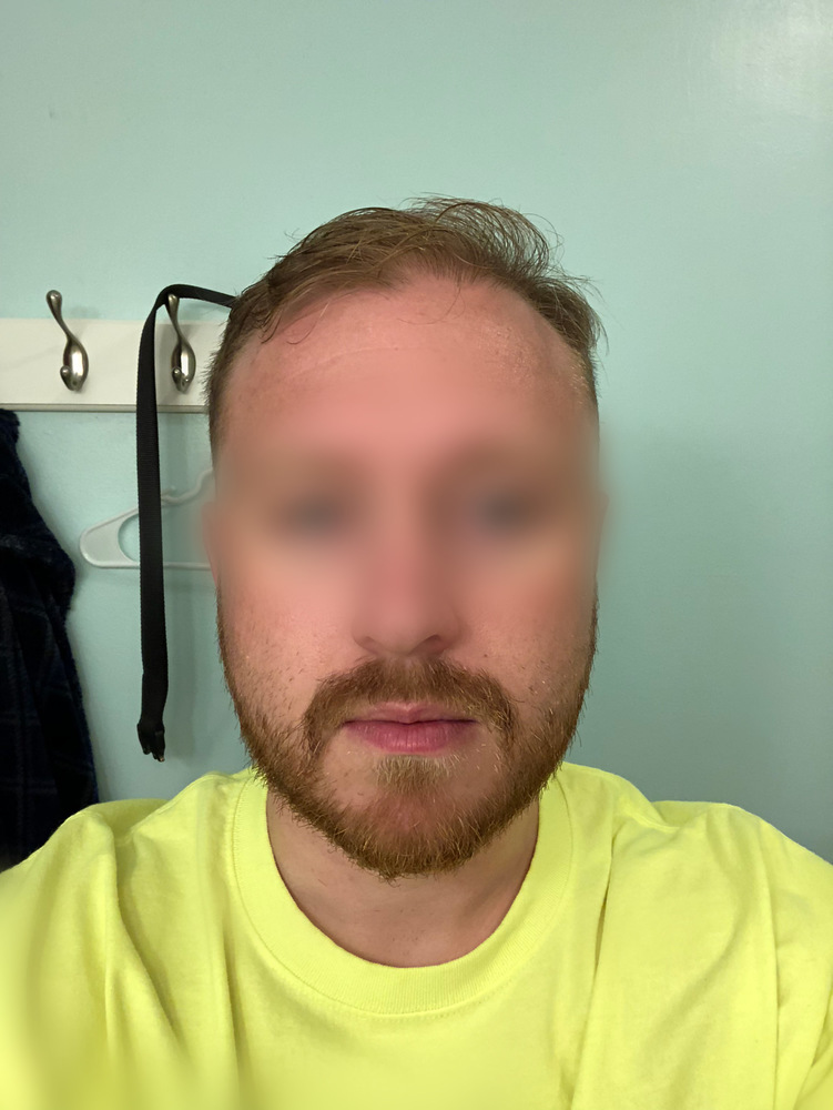 It looks good from the front but trrrible from the back/top. I think a buzz will help de-emphasize that contrast and you’ll still have a decent looking hairline.