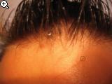 To compare the two pics, I made a black mark on the same position. On the picture, made in June you can see many many little hair, which are in the grow phase.