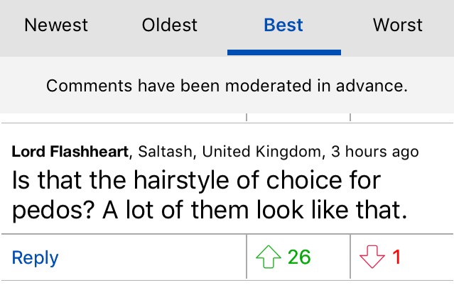 "Is that the hairstyle of choice for pedos? A lot of them look like that"