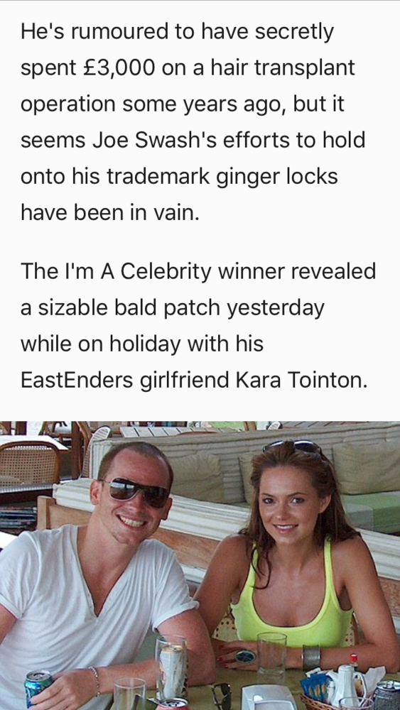 With a shaved head/bald he can't be sure a 9/10 girl would be with him. He's not bad for a bald guy but he's far from what he is with hair.
