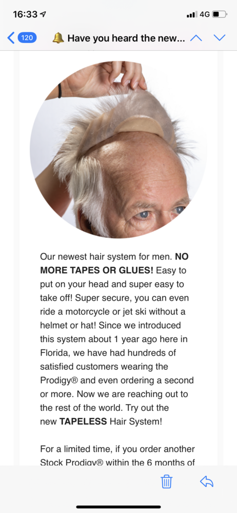 To me it seems clever but a bit gimmicky - fixing a problem that doesn't really exist, for me at least. Also, I would be a bit nervous about wearing a piece that was just attached by suction. It won't blow off, but if someone grabbed it the right way it would peel right off. But I guess if you are allergic to glue and tape, you want a high density look with a covered hairline, and you have money to spend, it might be worth investigating. The guy I talked to was planning to switch to a conventional lace hairpiece.