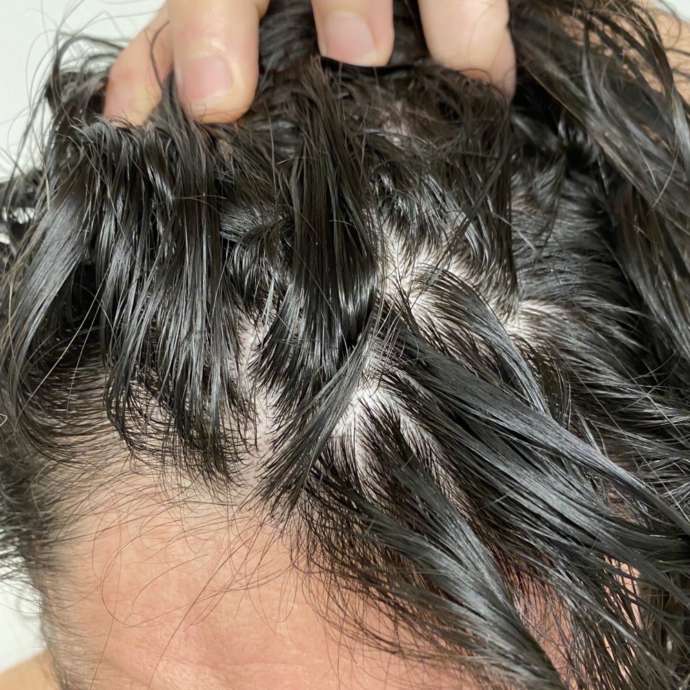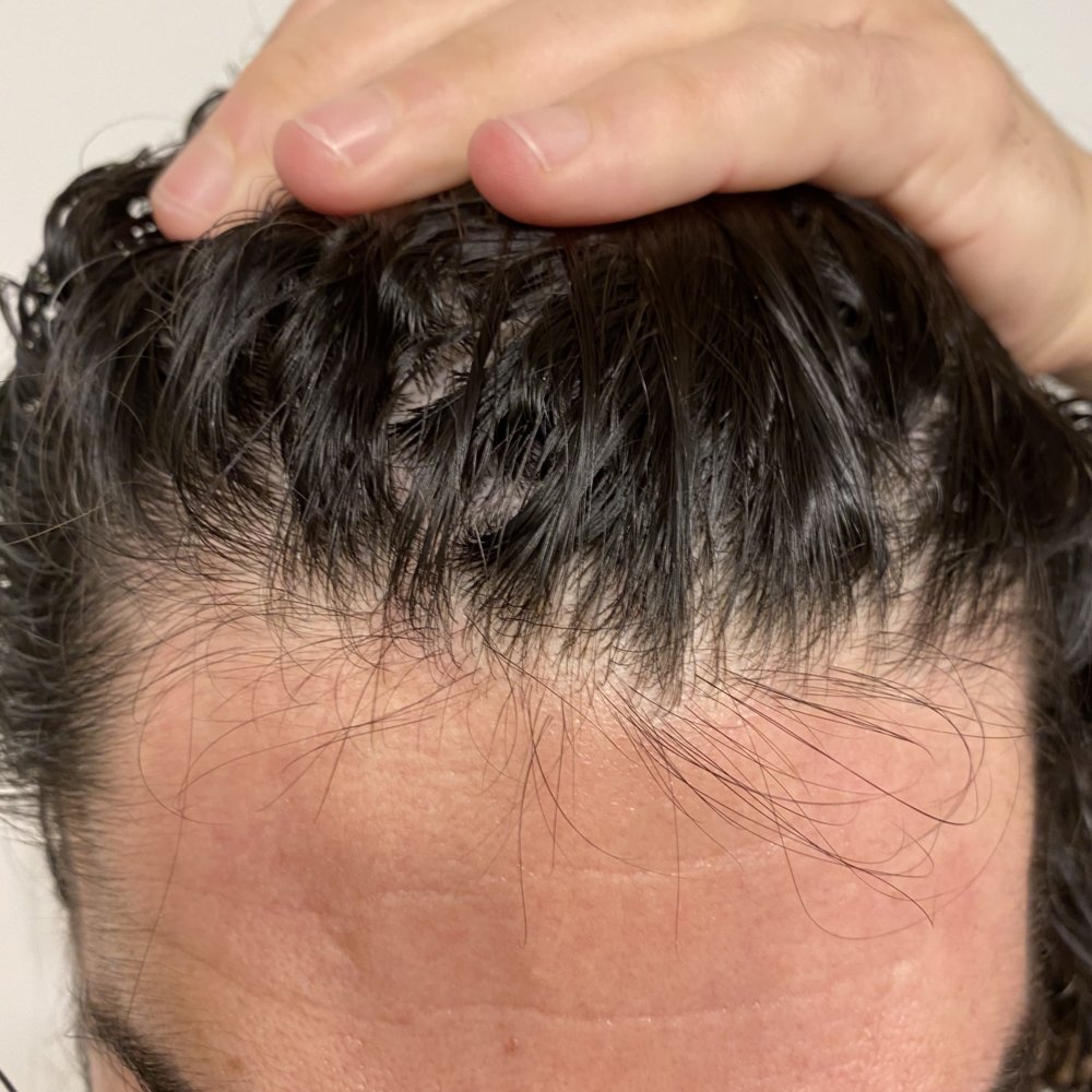 The risk and lead to trying Finasteride was a very tough choice for me and the sides where pretty hard to deny. I hoped topical was an answer to stop the sides, it simply is not. I’m getting iron IVs now and the doctors have me using HCG to try and recover (destroying hair). The length, hair color and waviness help to hide a lot but there’s a fraction of the density left. a short cut would show the thinning on crown vertex and not the hairline.