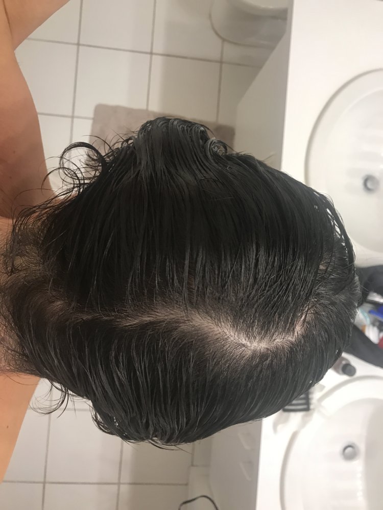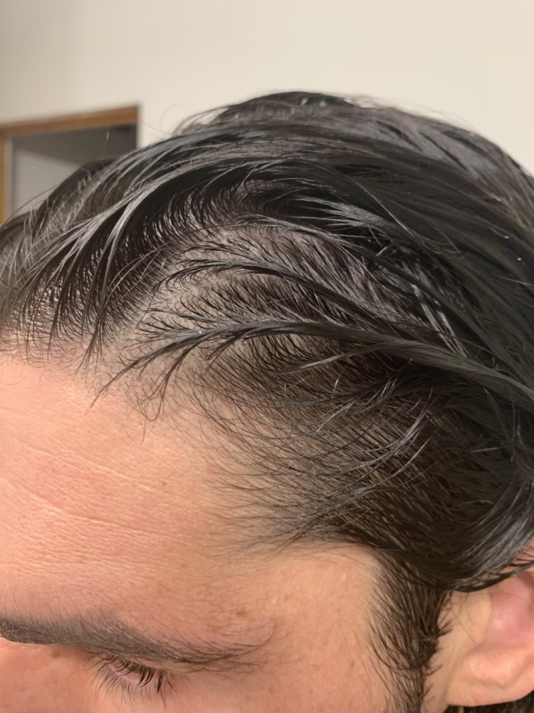 A month ago. Currently losing what I think are the last of the healthy long (8in) hairs from the forelock. I occasionally have a loose tie of the hair in and worried I’m tanking out a bit. If I could slow the shed I think I could stabilize and makeup some ground. The miniaturization on the sides concerns me but may have a connection to the oral minoxidil.