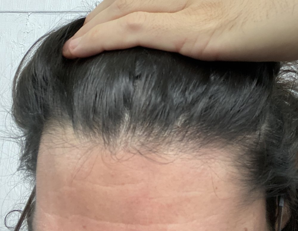 This photo shows the temples thinning. I’m using the topical Finasteride and oral minoxidil but I have to say my hair has only gotten worse on it.