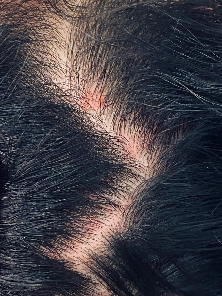No idea what is going on here either entire back of head covered in red spots. Do you think oral AA better than the strong topical.