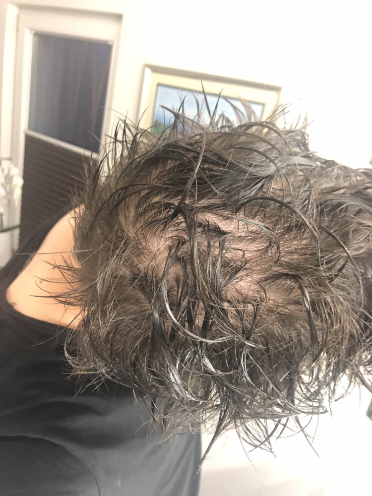 My current shedding is 4-5 hairs on the pillow, 0-4 hairs when I take off my hair tie and 10-15 in the shower. There are alot more because the rest get stuck in my hair because it's curly and messy but that's what i see. Before the vinegar and wooden brush it was like 25-30 in the shower, 8-10 on my pillow case, many of them miniaturized, and 5-8 when I take off my hair tie. Today I still shed miniaturized hairs, maybe because I skipped certain areas the first two times when I did massage with a wooden brush. I hope it stops. Despite losing a bit of density and having some miniaturazation, my hair still appears pretty thick. I can't imagine how thick it would be if my scalp was healthy. This disease is being cured very slowly. I used to have insanely greasy hair, severe dandruff and painful to touch scalp and now I have everything in moderate amounts. The bald patch in my left temple is filling with hairs but i don't know if you the other places are improving.