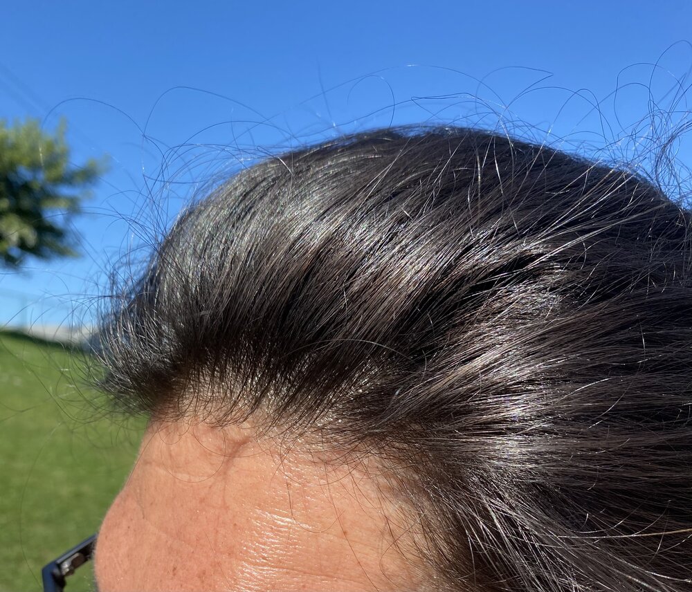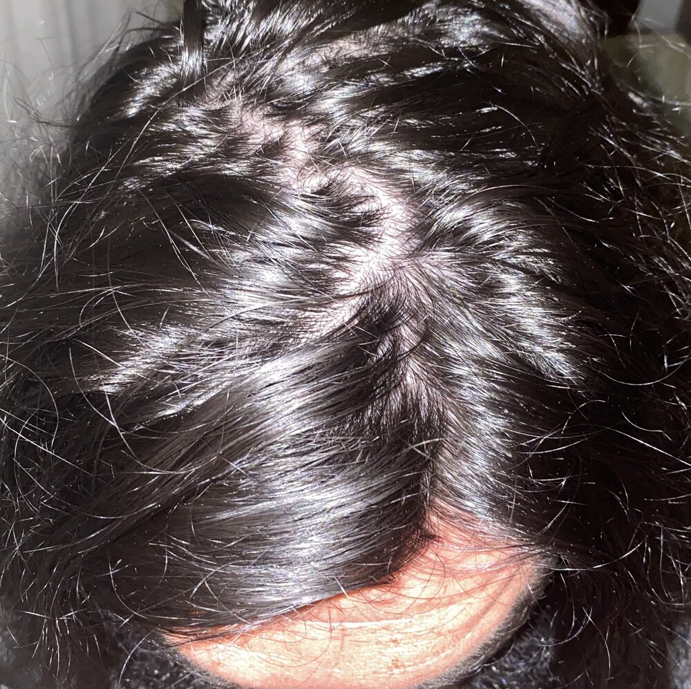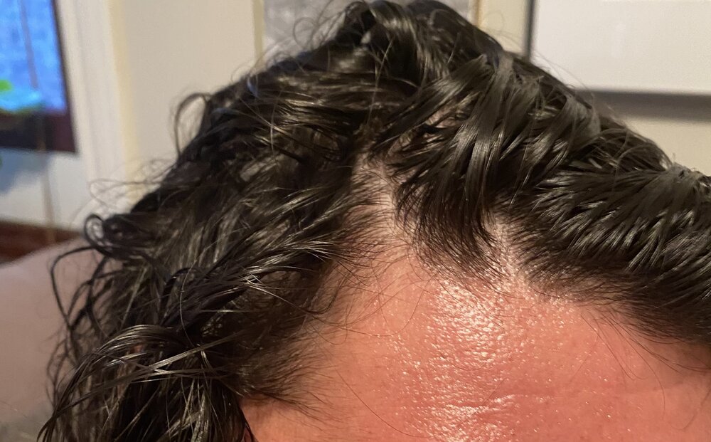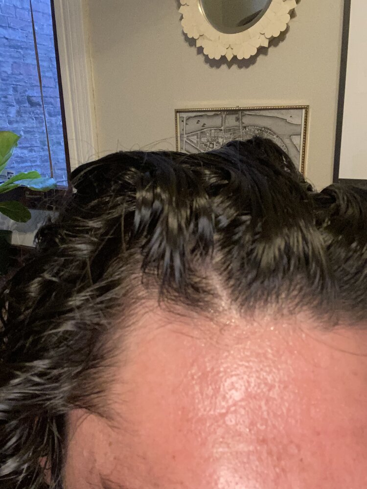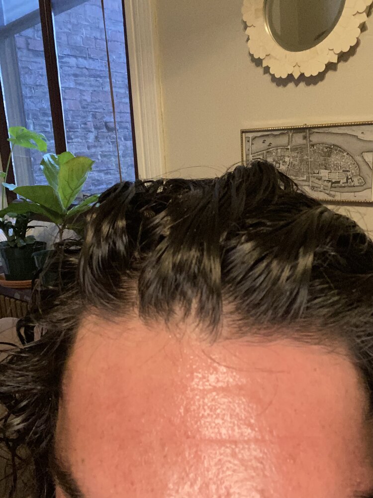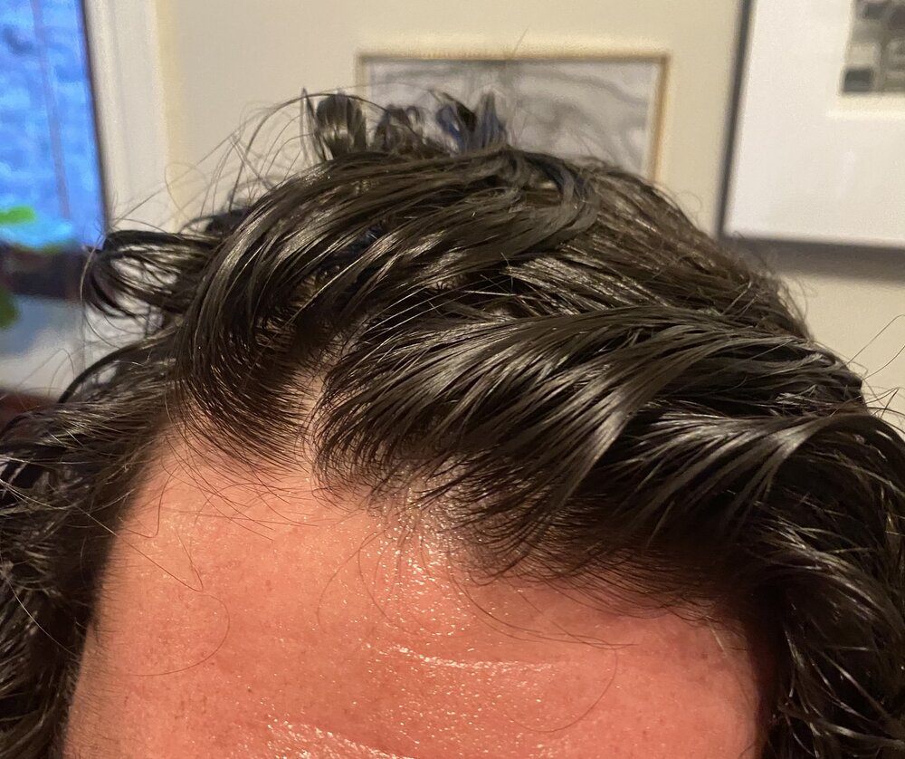This is a few hours later dry. The issue is there is about 50% of the regrowing hair that isn’t yet ‘miniaturizatized’ but is weak and light in color that falls out pretty much to the touch.