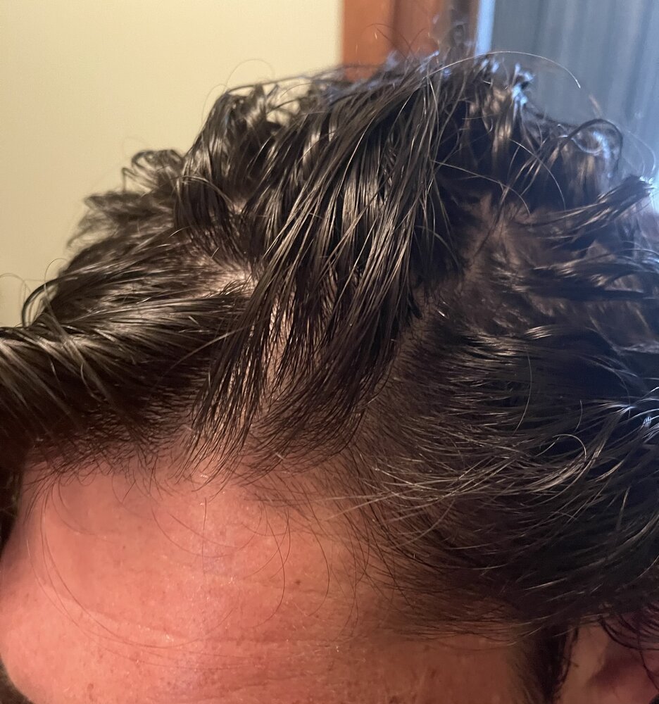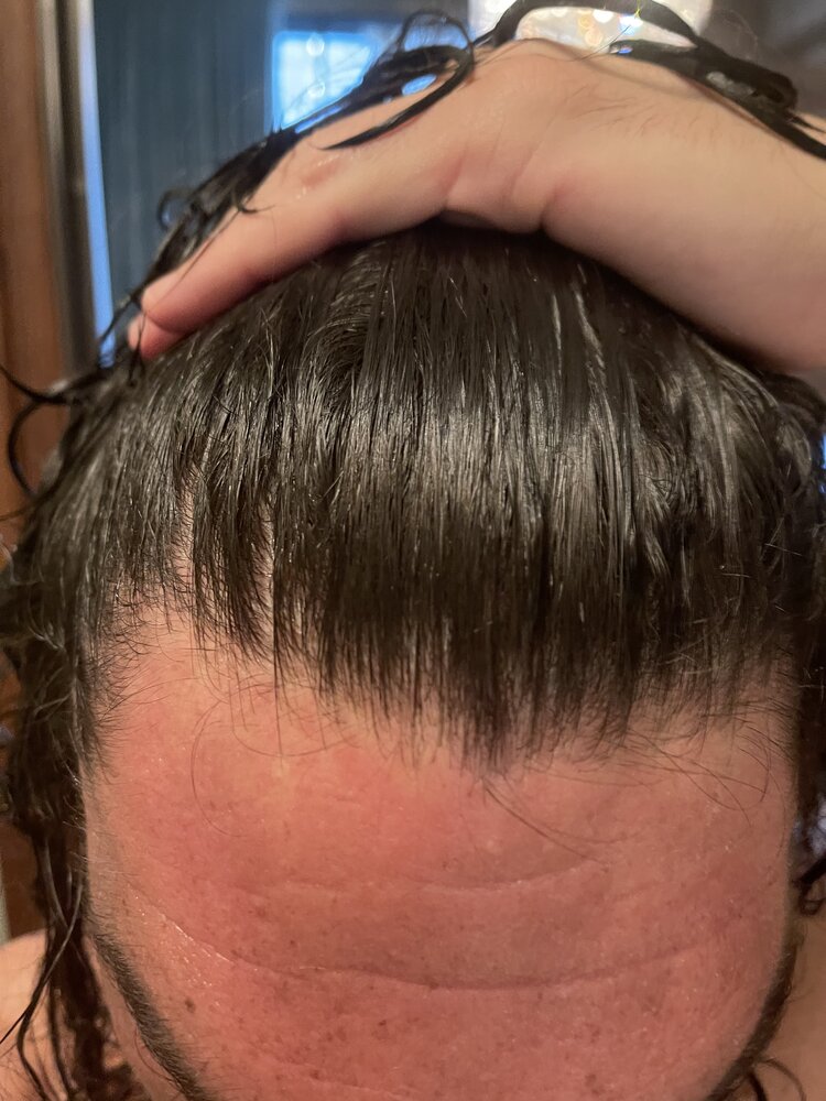 Biopsy showed male pattern baldness. My temples are gone diffusing everywhere. Hundreds of small hairs regrowing all thin AF at the hairline. 300+ hairs daily no question.