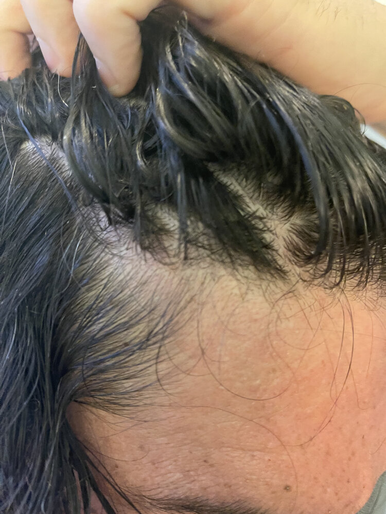 You are in your forties, post pics of your hair dry, not wet and styled in the worst ways possible... you don't even have any greys ffs. Im not doubting the mental impact it is having on you but you need to come to the realization that it is no way near as bad as you think.