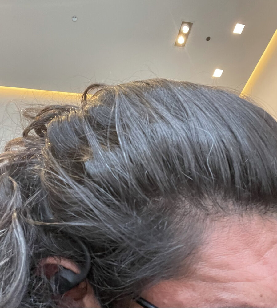 PERFECT hair at 40. Black dense zero shedding, thinning or recession.