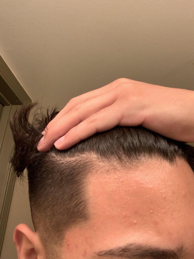 Does my forehead look big. My barber cut some my side burns making my head look bigger. I feel like my hairline looks bad.