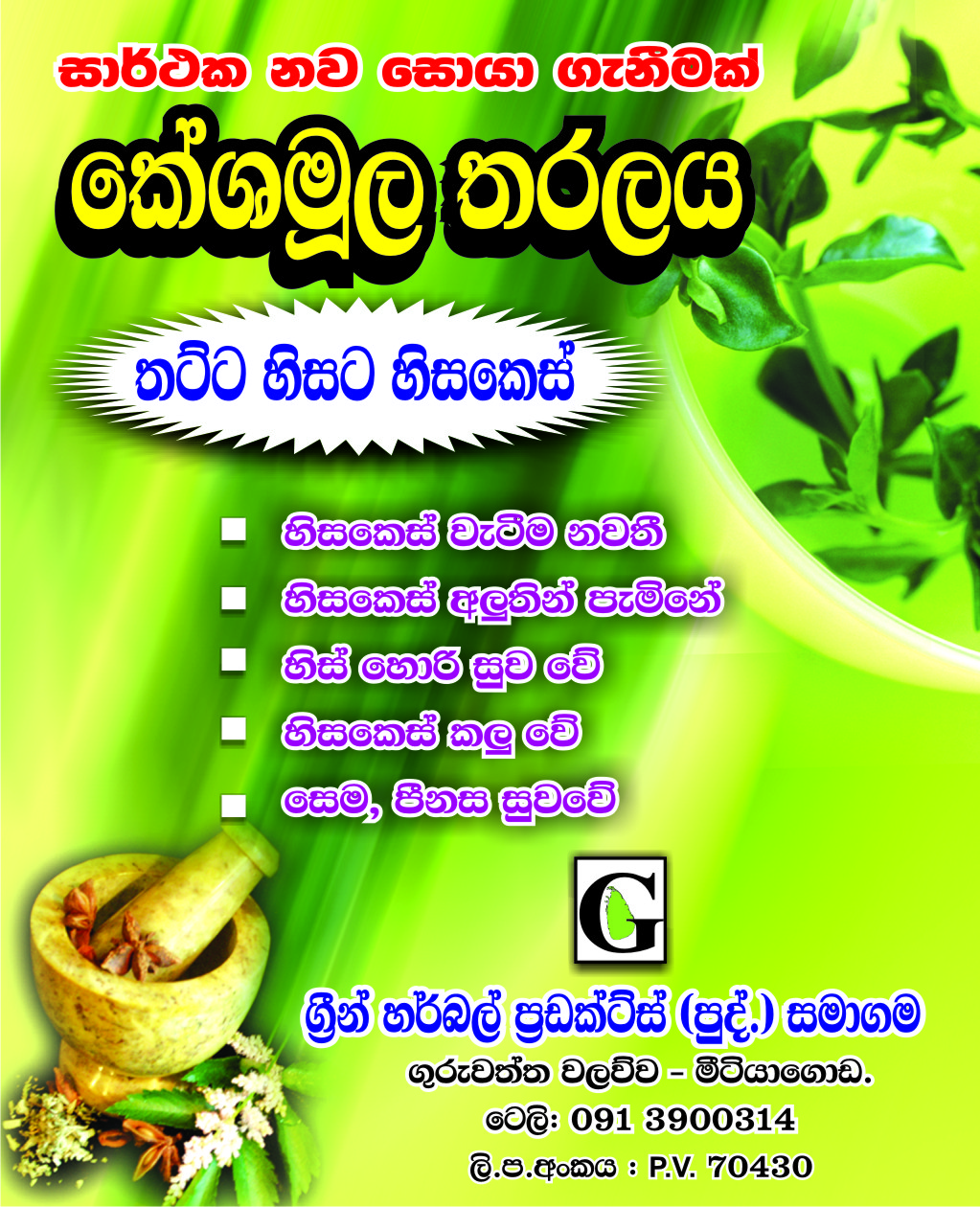 Very successful great useful hair medicine invented by a Srilankan. Please see the facebook----------innovations by Srilankans