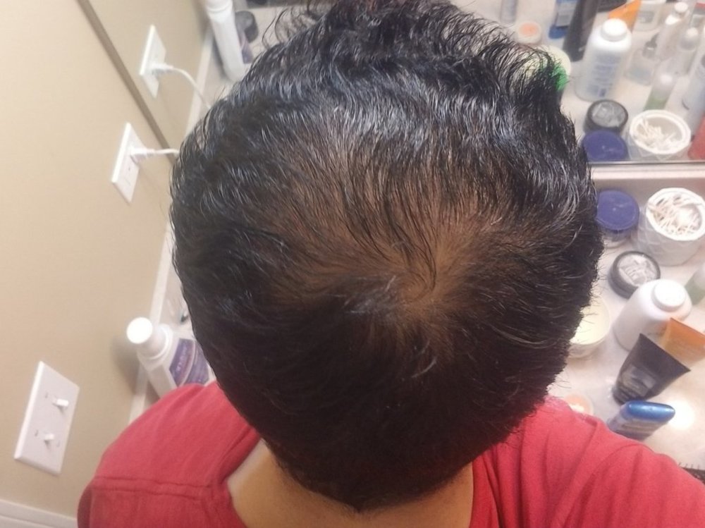 Another option is to just use concealers now since now you have enough hair to look like a full head of hair with concealers.