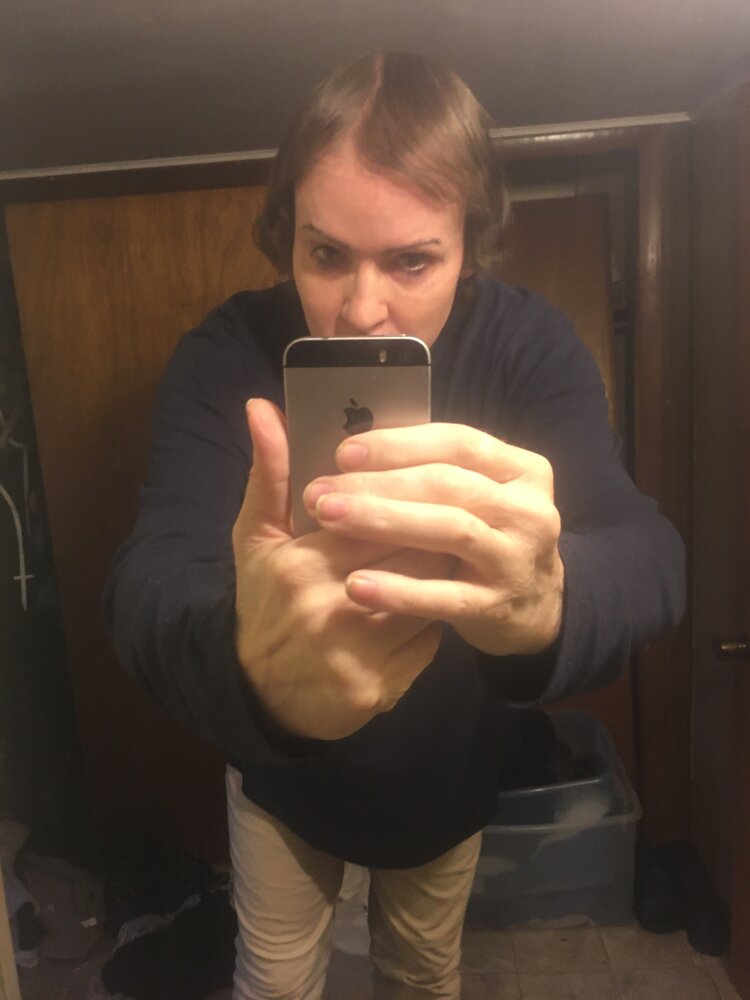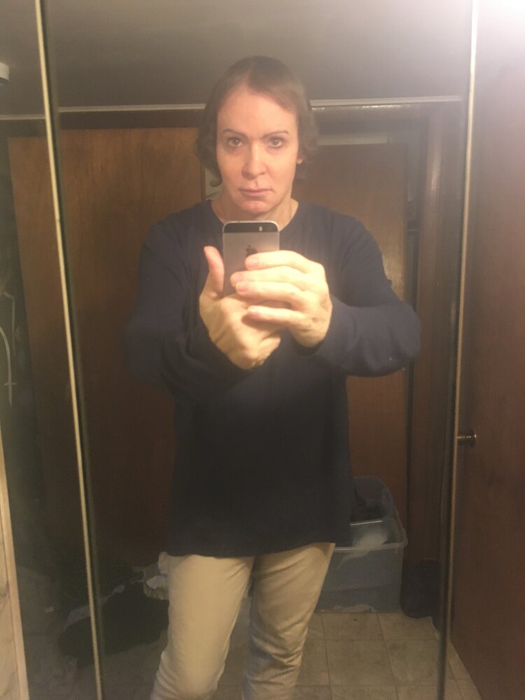 I haven't posted pics in a while. It's hard to gauge how often but probably with the oral minoxidil, two weeks is a good interval. I guess I am butching it up a little here with my drastically plummeting levels of estrogen as my P.A. told me to take my levels down a bit. My mood is definitely down but it's also a dreary gray day....