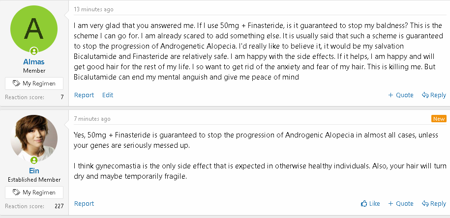 So RU, that thing that so many held their hopes upon somehow causes sheds? And hydroxy flutamide, the other highly touted one. I thought that RU was an analogue of estrogen so I don't know. Others have said similar things about letrozole ruining their hair forever. I am thoroughly baffled for you and others. Is there a way to stop a shed by stopping the medication? Maybe the experimental ones, I mean I don't know. Some people say they work and other people shed apparently. I am really sorry but you might try titrating to pinpoint dosages. I am on my fifth day of Castor Oil. I am not even sure how long it takes and what it is supposed to do really but for $14, I got quite a lot and 3 ml is like nothing in terms of quantity chosen. Oh yeah, what about sulfurtransferase with topical minoxidil or would that hurt your skin. The only thing that I see using oral minoxidil is just circles that aren't terrible. Concealer works pretty well on that, plus moisturizer seems to help. They get better as the day goes on.I played with RU 2 years ago for a month and it hurt my hair then @ 50 mg a day. After seeing a few of Derek's pro-RU videos I figured I would give it another try, this time at a higher dose. Ugh.. I ended up losing a lot of hair because I kept going and going, subscribing to the HairLossTalk.com mantra 'ride out the shed'. Ended up taking two big steps back from all of the very slow gains I had made.