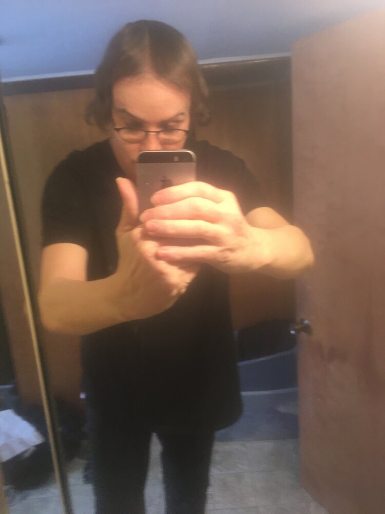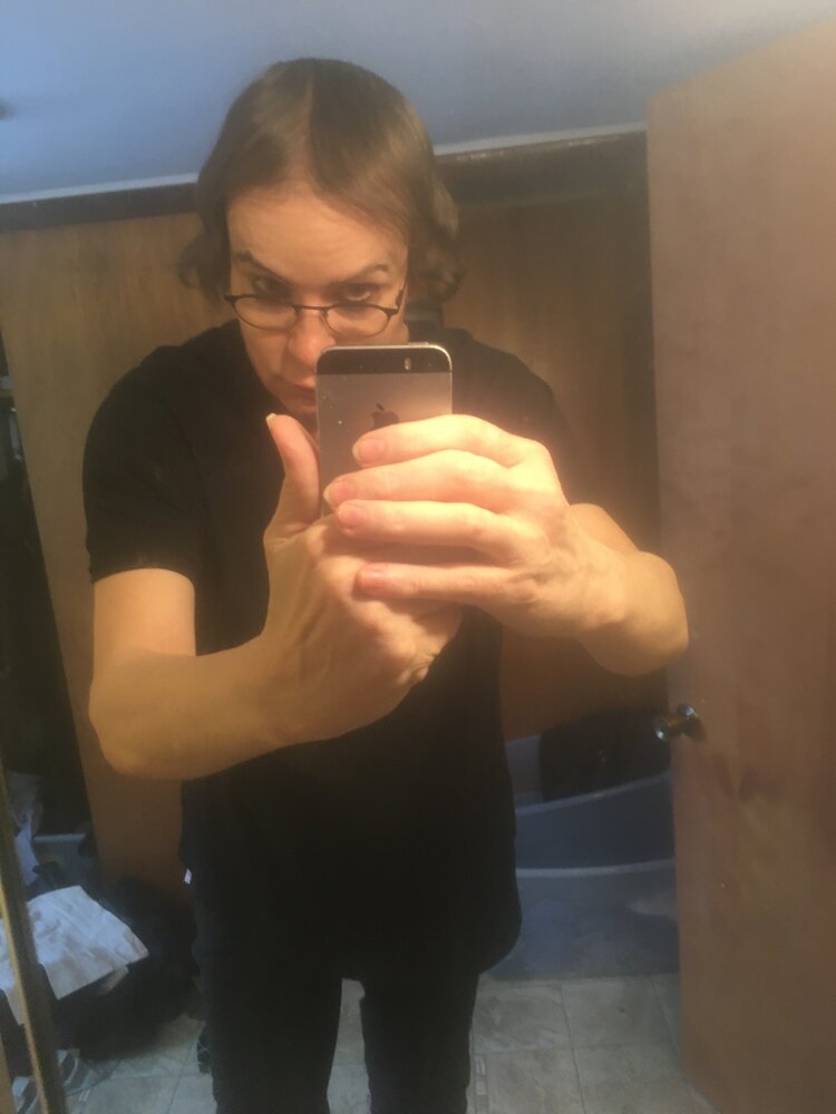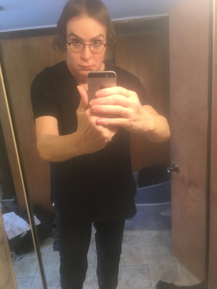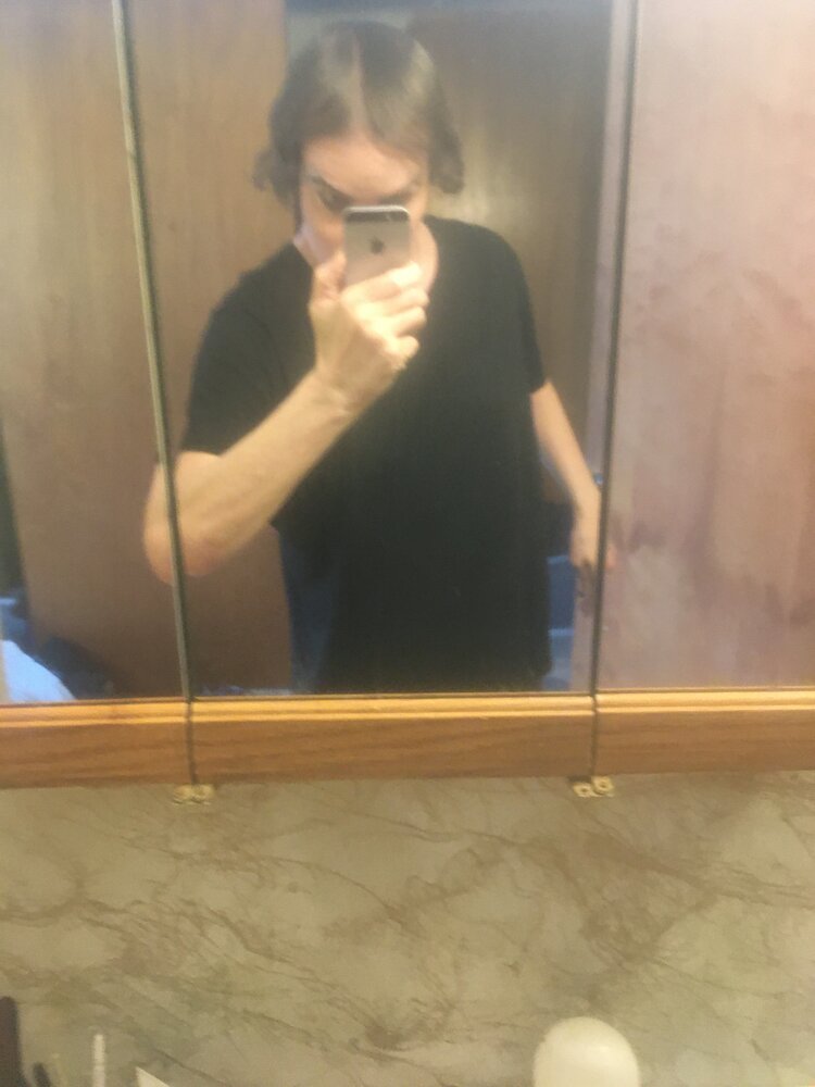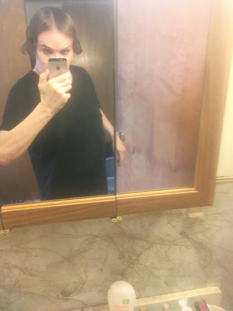 Wrong time of day for my bathroom but I hadn't posted for a while. These are a bit washed out color-wise and hair-wise, lol since I used Keto on my hair this morning and it just strips it bare of moisture. Like @bridgeburn, I might just stop entirely from washing my hair since I probably lack inflammation. Hair is getting longer and beginning to frame my face. I could still use more volume but the hairline in the center is filling in nicely. I derma-rolled hair, face, palms, soles of my feet, arms, neck and a couple of other things last night with my 2.0mm gauge roller. I ordered ten more tubes of Estrogel and a couple of tubes more of Retin-A from my Thai vendor. I think the micro-needling and the Retin-A are working well for my face.