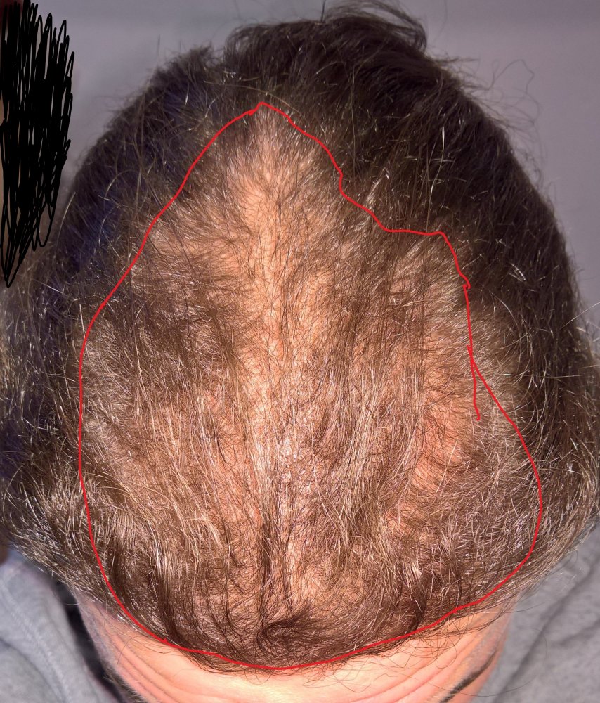 When I am going to get my second hair transplant within 6 months time, all the hair you see red encircled in ‘Picture 1’ will be shaved down, also by the hairline as I will get a bit more grafts there again. Hence, what I am looking for is a temporary hair piece that will last for some 6-8 months that I can use with clips (and not glue) in order not to affect my newly transplanted hair in a bad way.