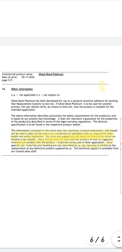 Still if there are so many users thanks to those people the industry should have more conscience, be more caring. It doesn't make it such a marginal product anymore then. It means there tons of actual users. They don't know they are only applying in the front. They should be assume full scalp bonding.Yes they have, but in a completely different manner as I had mentioned prior. They do not shave their head exposing their dermal scalp. They apply a pantyhose like material over top of their hair and then fit the wig on top of that if any adhesive it is a very miniscule amount at the hairline. They also do not leave it on for 1 to 4 weeks, typically it's a few days, or off every evening. It's not anything like what we're doing.