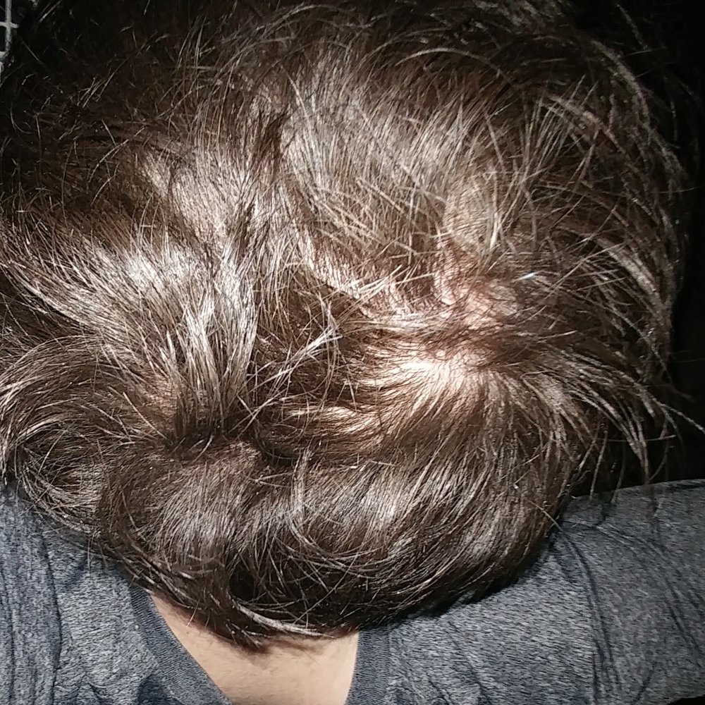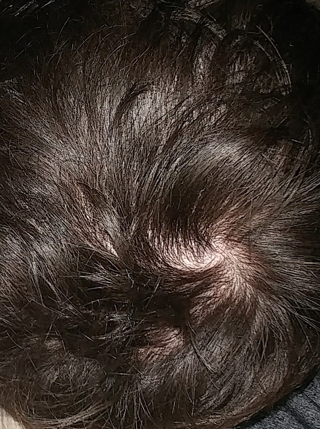 Hair in the back has been beginning to feel more dry and I cant tell if the whorl on my head is getting bigger. im going to wait a while to see if anything changes, but I want someone else's opinion on it