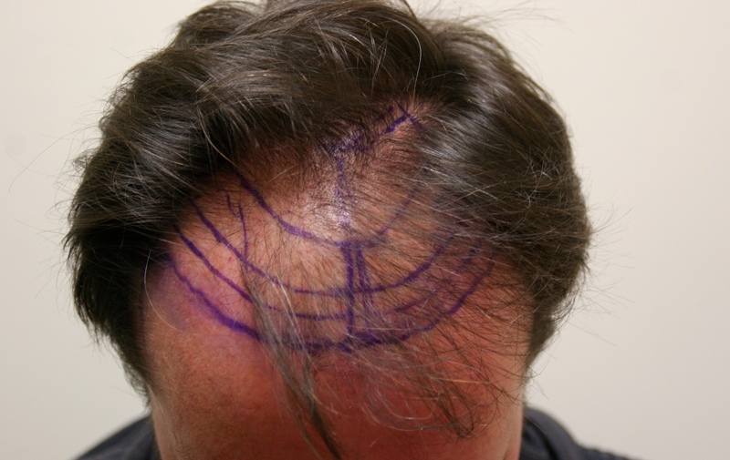 Having had surgery before, including an earlier transplant at home in Australia, I was quite nervous about the procedure. I went in at 9am and Dr Rahal had a look at how many grafts we could get from my donor, the original plan was for 3,500, but Dr Rahal thought we should be able to get around 4,000. That surprised me actually as I had been told I don't have good scalp laxity and I have already had a 2,000 strip procedure. But I did the scalp laxity exercises for the last couple of months, so they obviously really work. In terms of hairline approach, Dr Rahal preferred to be conservative and go for a mature male hairline. He noted tha the previous hair transplant had left with a very sever widow's peak with no work done in the temple areas at all. He rounded out and we agreed to ithe design All through this process I found the Dr Rahal to be professional and accomodating, discussing through issues with different approaches.. Once the design was complete it was off to have more pictures taken.