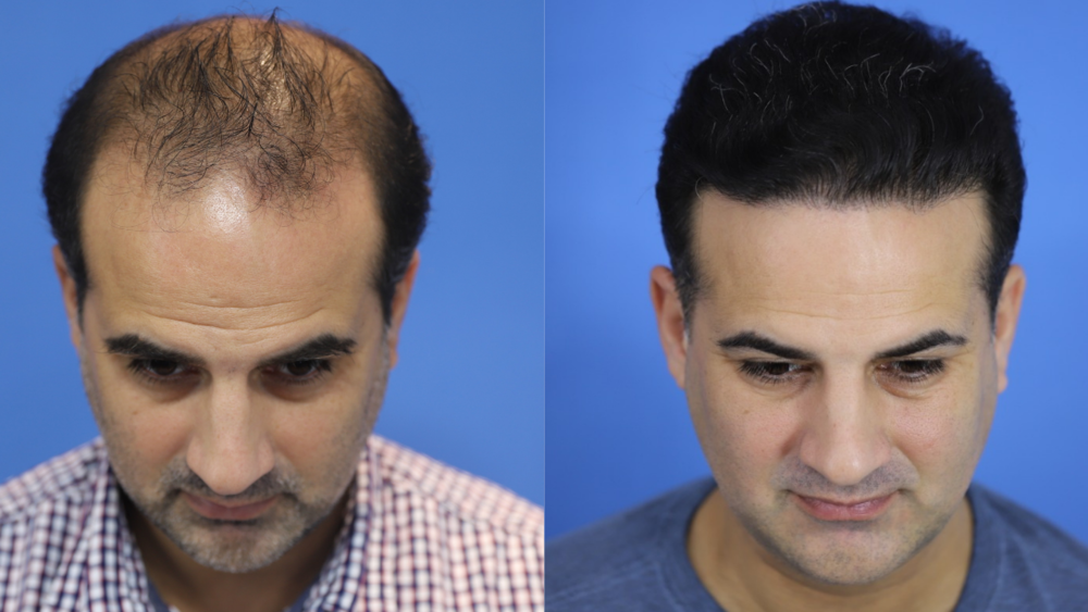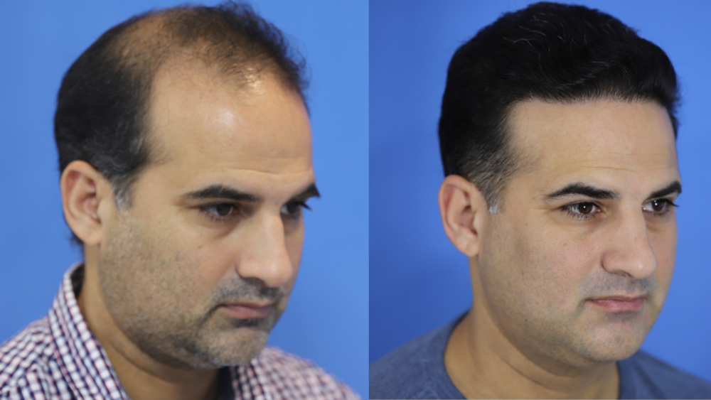 The 41-year-old had Grade VI baldness on the Norwood Hamilton Scale. For the total coverage of his scalp, we gave him 7300 grafts. He got 4500 grafts for his first sitting in the frontal half of his scalp. 2500 grafts were taken from the scalp donor and 2000 from the beard donor. In the second sitting, he went for 2800 grafts where 1700 grafts were from the scalp donor and 1100 grafts were from the beard donor. The two sittings were done 5 months apart. He had a complete look change by the 5th month itself. However, by the 10th month, his results were outstanding and his scalp was covered with dense and thick hair.