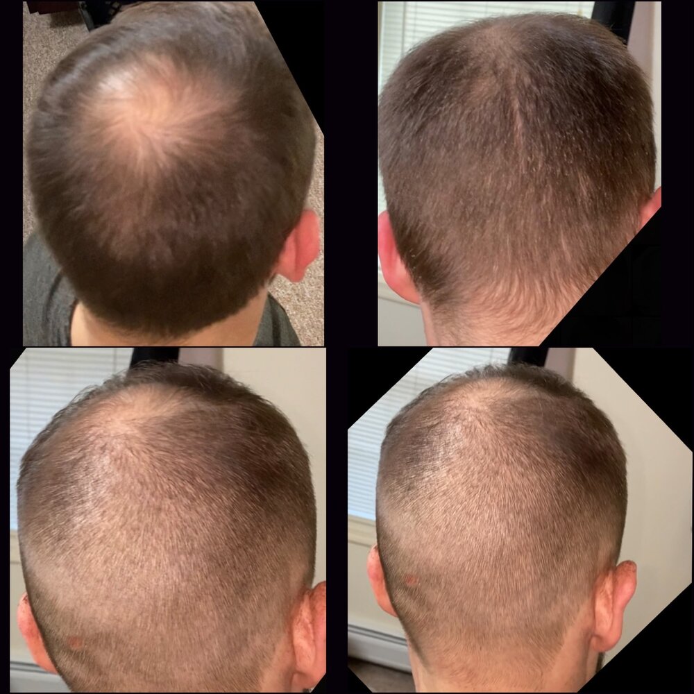 Does my giant bald spot look better with long hair, or with the new haircut?