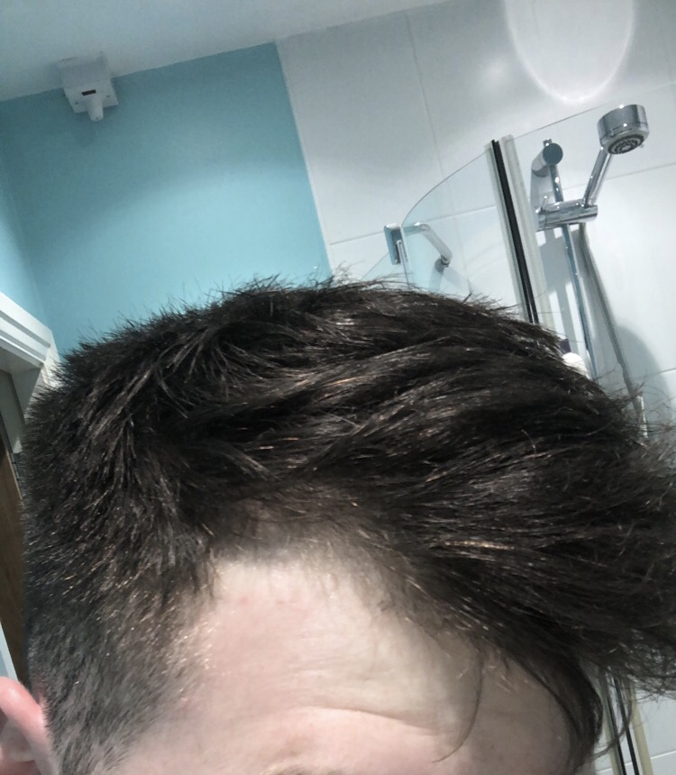 The shorter hair is 1 month on finasteride (bottom row). Yes i think it might be working wasnt expecting this on such minimal loss on the hairline.Which is which again?