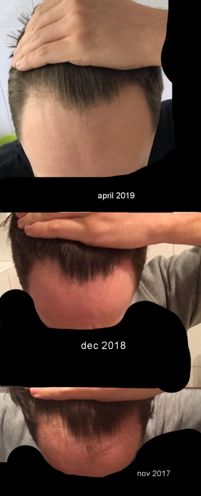 I'm 25, i have been taking propecia for i think about 1.5 years. I started taking it because i noticed that my hairline had receeded. There is 0 history of hairloss in my family, although my mother does have a high hairline. It's hard for me to tell if my hairline has changed since i have been taking the drug, to me the pictures look pretty much the same. But I feel like it has receeded a little more and my hair feels thinner. What do you think?