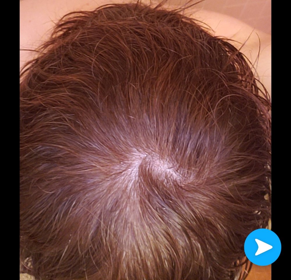I can see diffuse thinning of frontal hairline. But diffusion is very mild and it is normal. I don't see any issues. Hair on top of head are somewhat less dense than remaining.