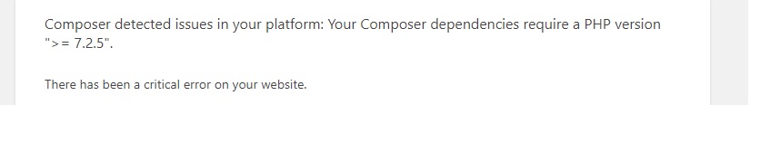 Composer detected issues in your platform: Your Composer dependencies require a PHP version ">= 7.2.5".