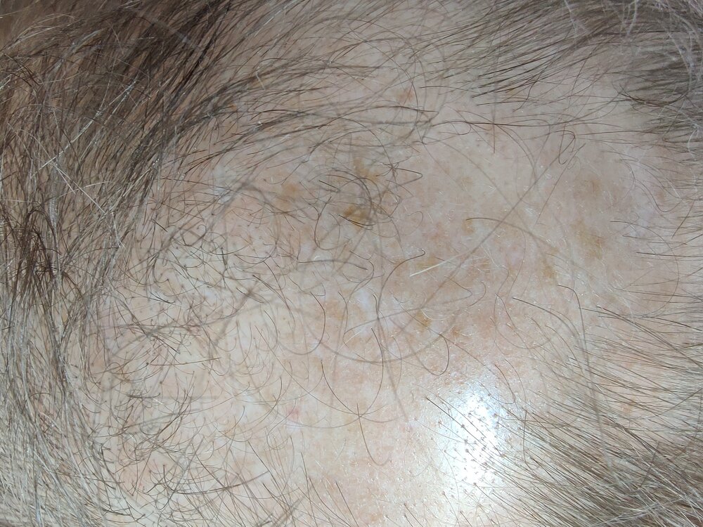 - 1 x 1ml 5% minoxidil liquid (Kirkland brand) applied all over top of head, focusing on hairline and crown.