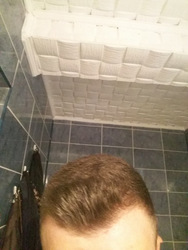 I was just wondering, it is time for the "buzz cut " already?The first pictures were taken when my hair was wet, last 4 one when it was dry .I only have a receding hairline, crown is fine.