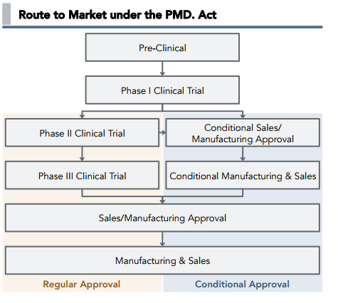 Mr Sadila, phase III trials don't last seven years.The Pharmaceuticals and Medical Devices Act (PMD. Act) instituted a conditional approval system for Regenerative Medical Products in Japan.